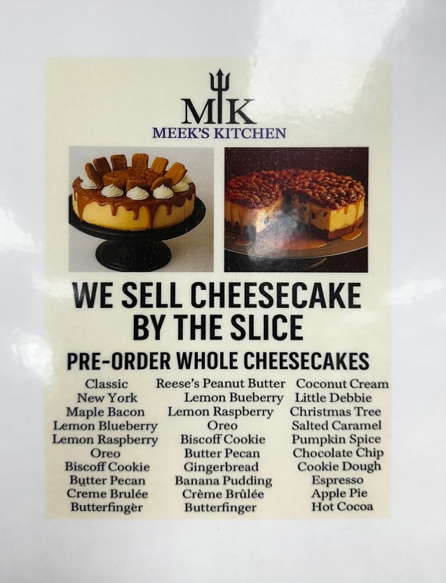 We didn’t order cheesecake, but imagine that they are wonderful—just look at the flavors.