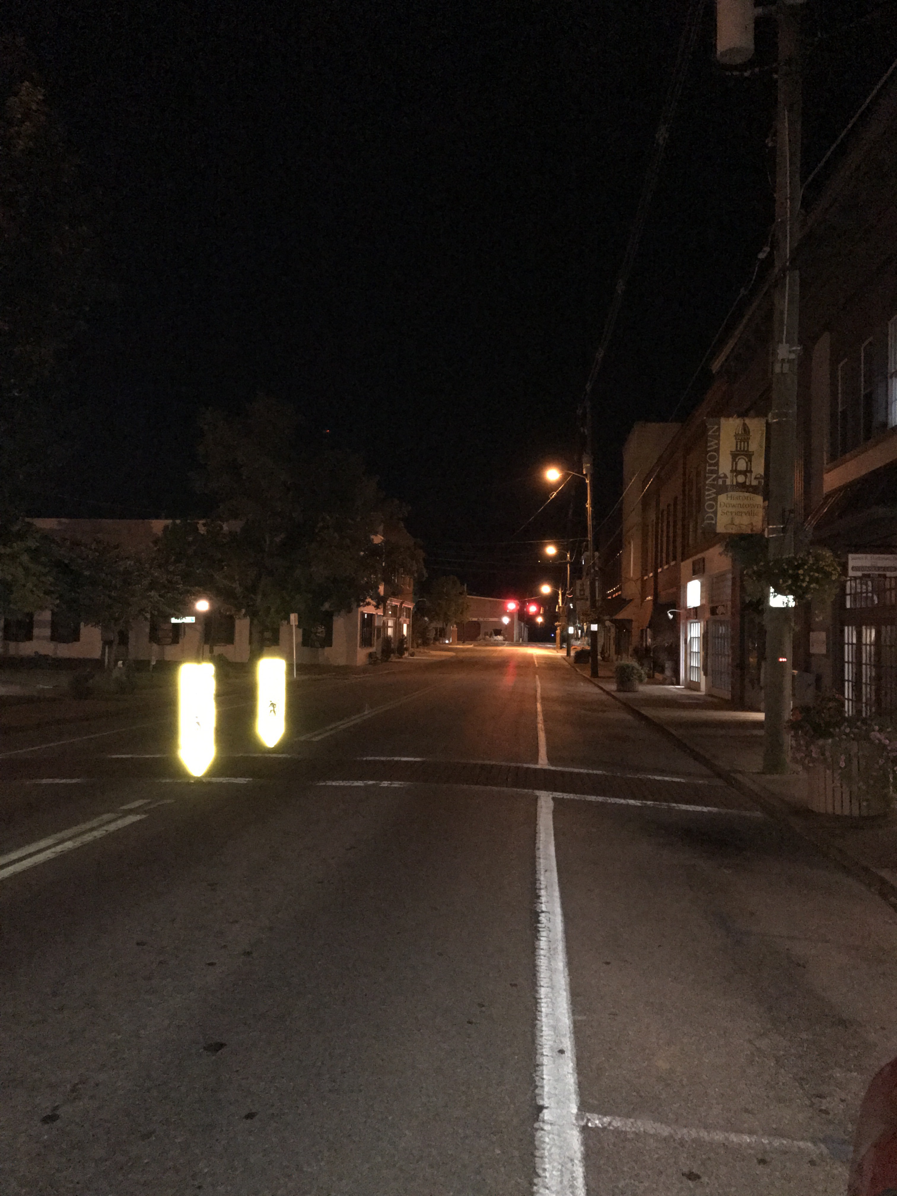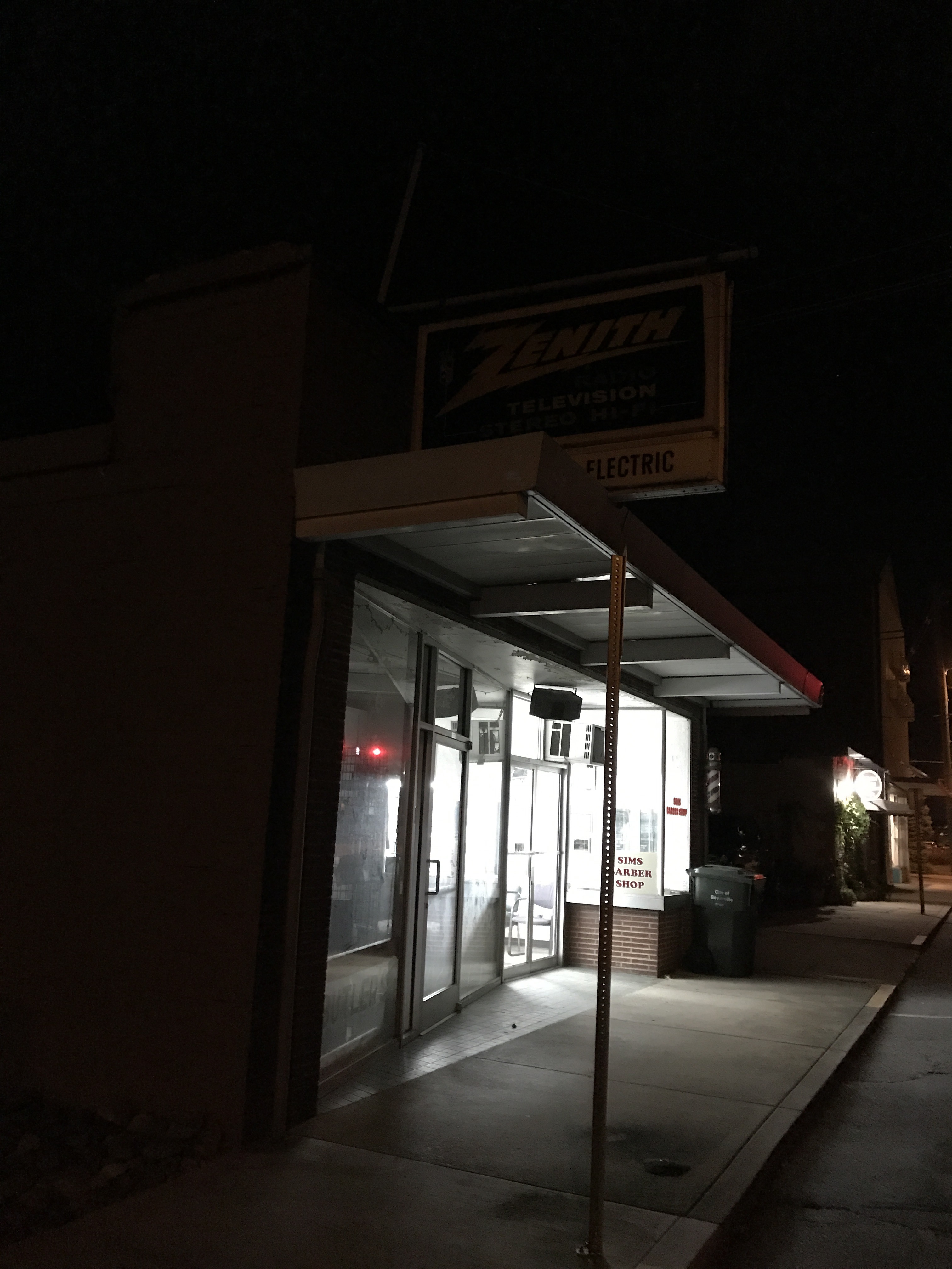 Bruce Street is practically deserted at 4:48 in the morning…except for the light in Sims Barbershop, to the left. You can park right in front of the door at that time too!