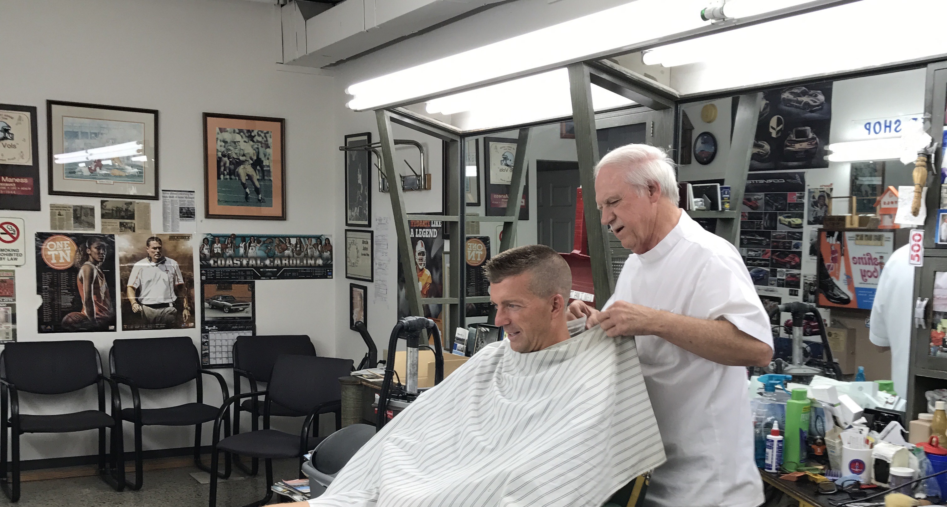 Someone I know gets a haircut at 4:30 a.m. every two weeks. What kind of place is open that early? I have walked by this Bruce Street business often and have even waved at the gentleman inside as I have walked by to the farmer’s market. I wanted to know a little more about Sims barber shop, a Sevierville institution; however, I don’t think that I have ever set foot in a barbershop. It was a place that I had never visited before so I needed a guide. A navigator. Jayson Nave fit the bill. Follow along as I visit a Sevierville tradition and, in the process, meet a huge Tennessee Vols fan. This is a Bruce Street favorite.