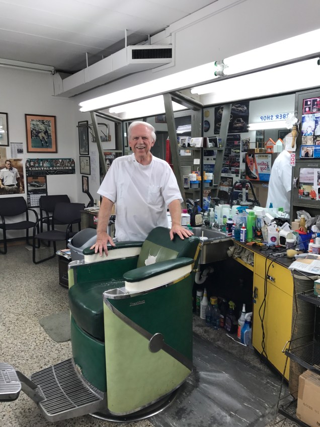 This is the original barbershop pole that he bought in 1959. It doesn’t work right now, but still is a traditional sign of the service. I wish that someone could go there and fix it for him. How cool would that be?
