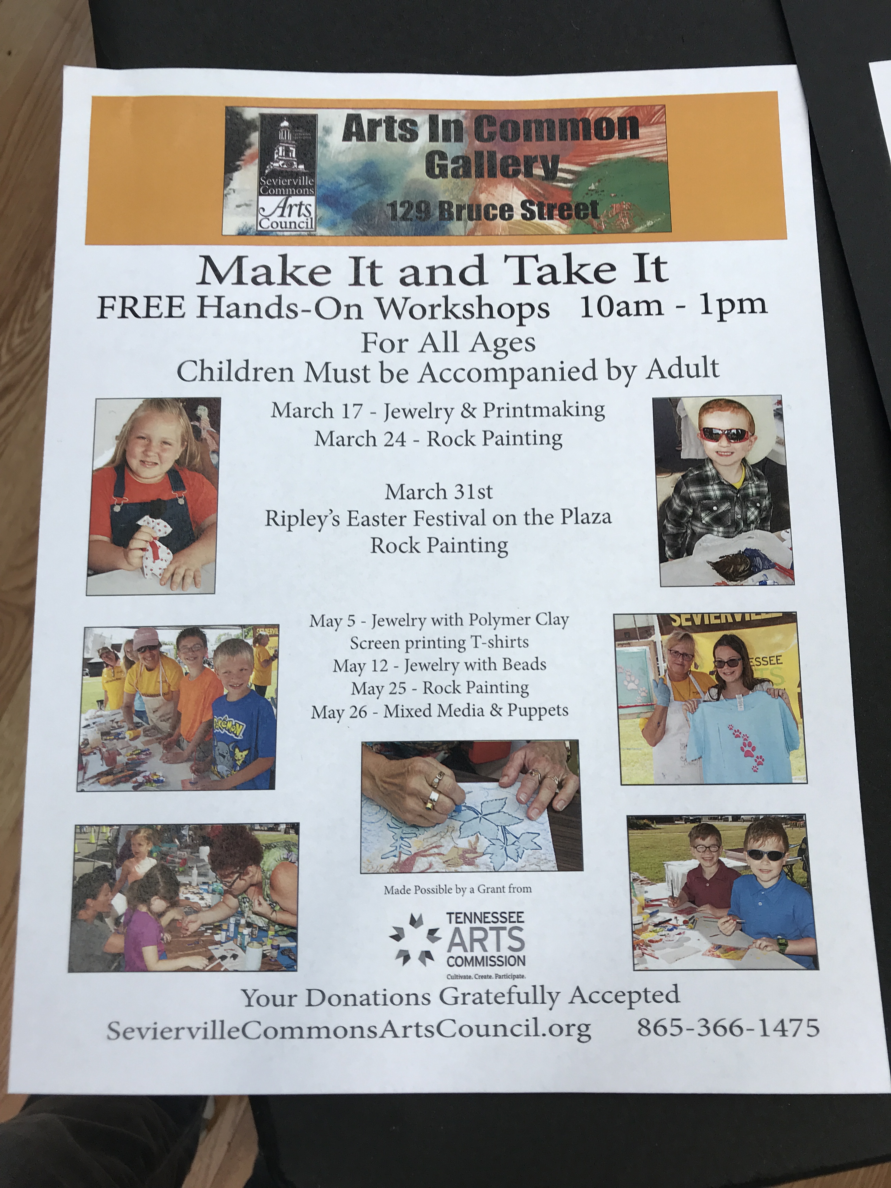Sevierville Commons Arts Council ‘Make It and Take It’ Workshops Begin For Spring 2018