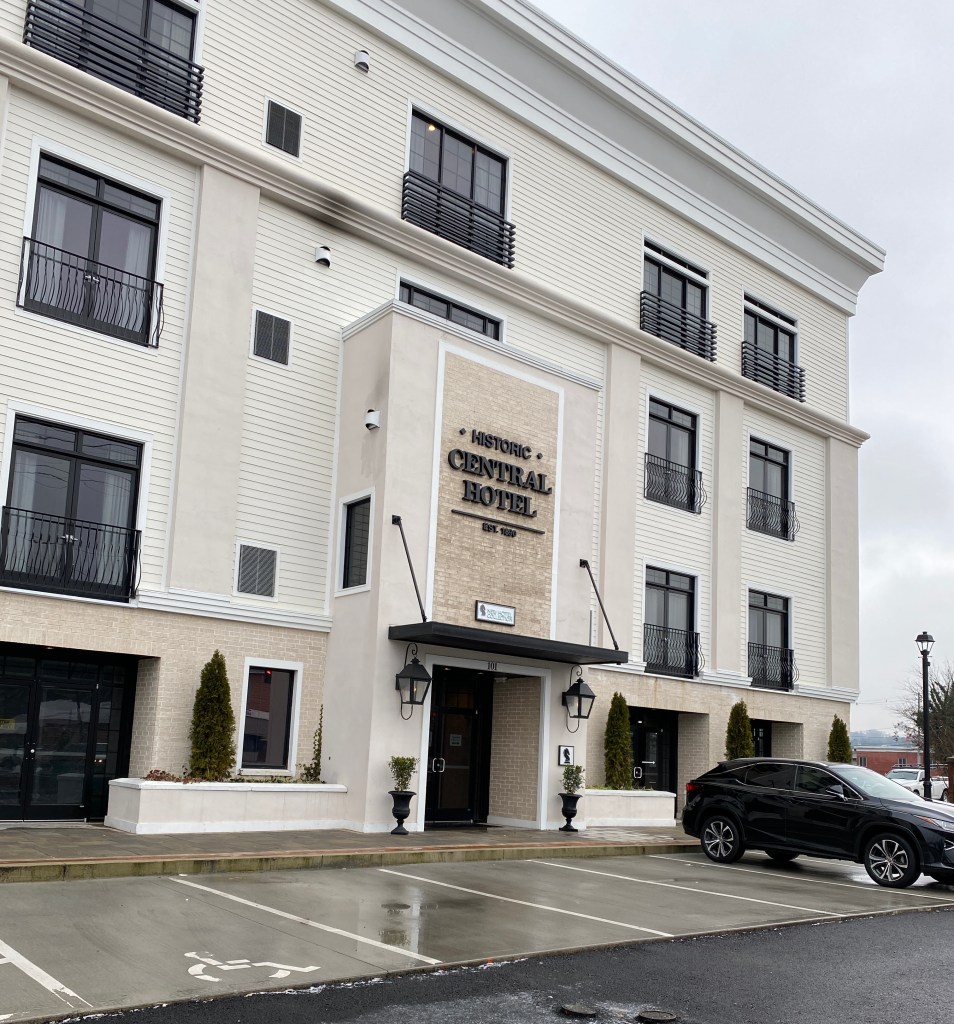 Honeybee Coffee Company is located on the ground floor of the new Historic Central Hotel in downtown Sevierville. Customers can use several parking spots in front of the business. I used a second option: the public parking lot across the street on Court Avenue.