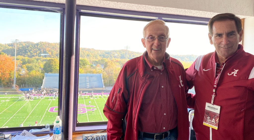 Retired band director, Doc Ramsey, hosted the Bama band during his years at SCHS and continues the connection today. Pictured are retired SCHS band director, Doc Ramsey, (left) and director of the Bama Million Dollar Band, Dr. Kenneth Ozzello.