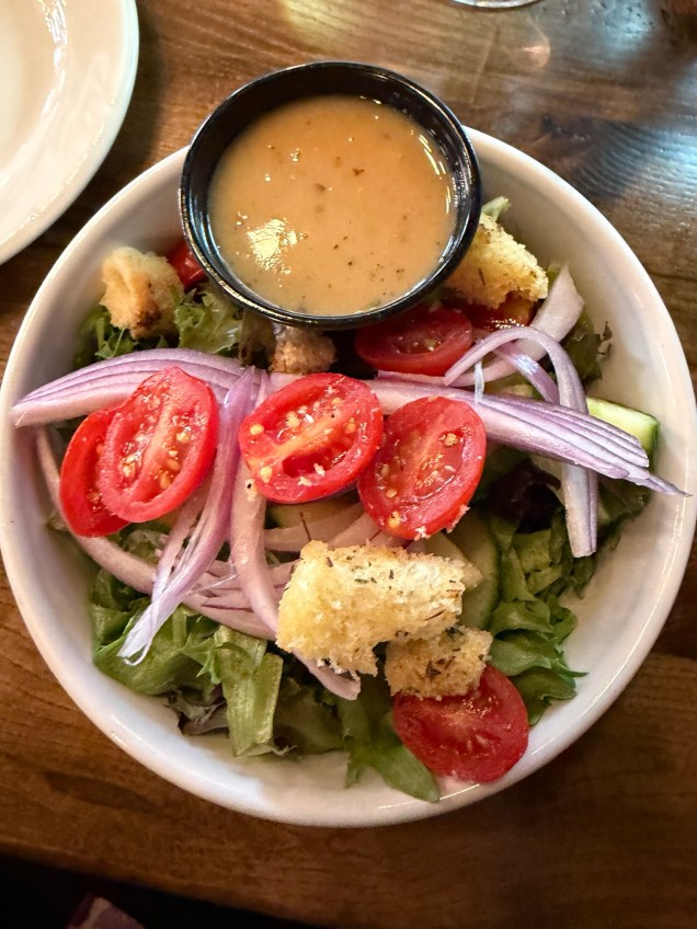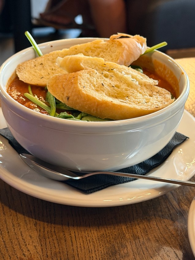 Friends enjoyed the Italian sausage and potato soup with two pieces of Italian bread on top. Next time, I may try the chicken and white bean soup.