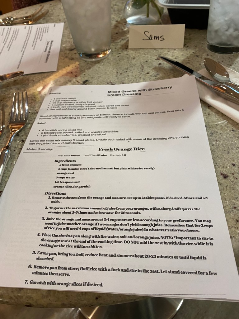 I was intrigued by the Orange Rice and it did not disappoint. Important tip: make sure that you rinse Jasmine Rice before cooking it to reduce the starch. There was still plenty of starch so I can’t imagine not rinsing it now. The orange flavor was light and made the side dish special.