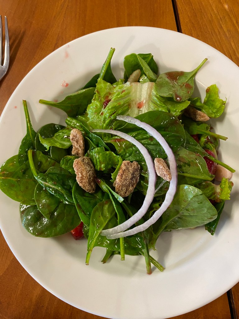 The first course was excellent. Candied pecans in a salad + strawberries = instant happiness.