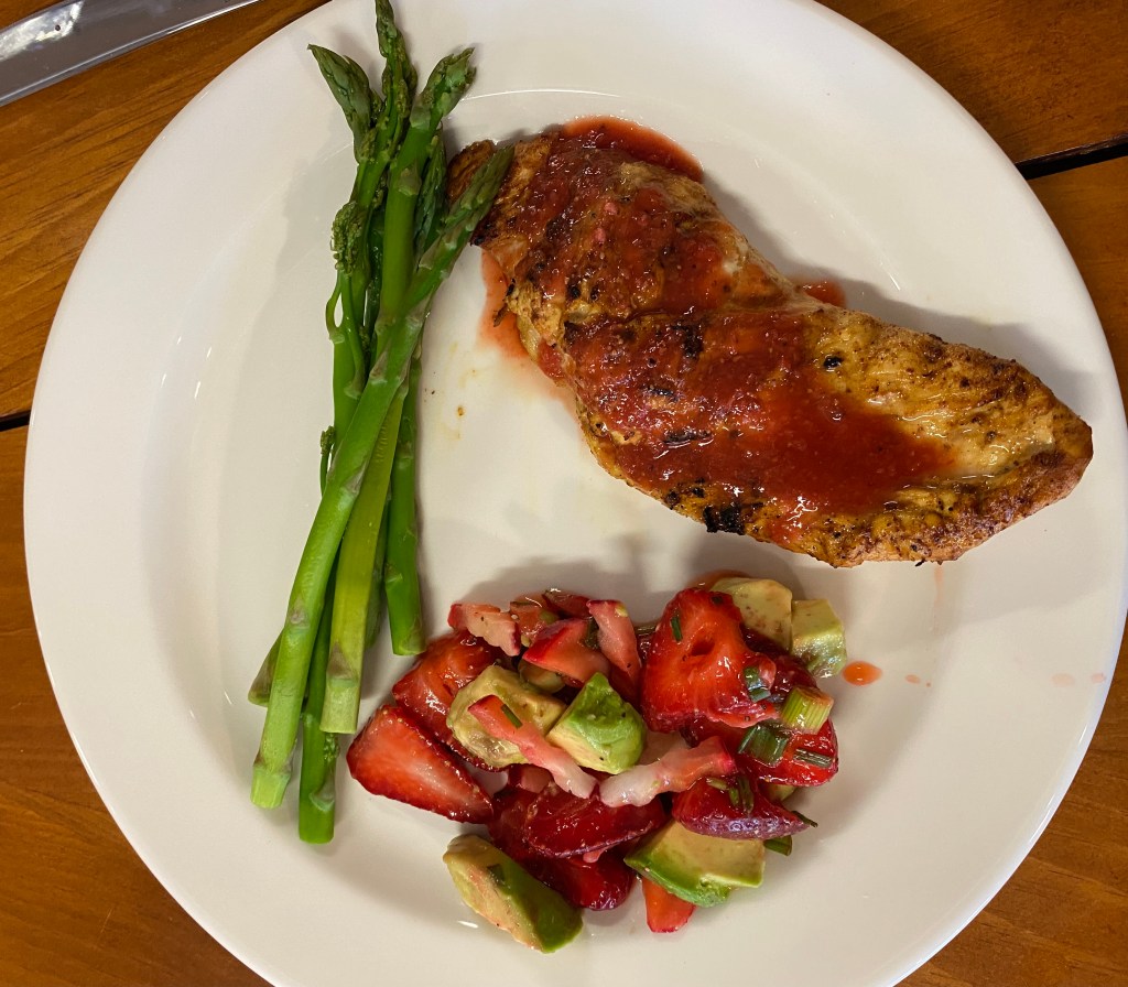 Grilled chicken with strawberry barbecue sauce and strawberry salsa