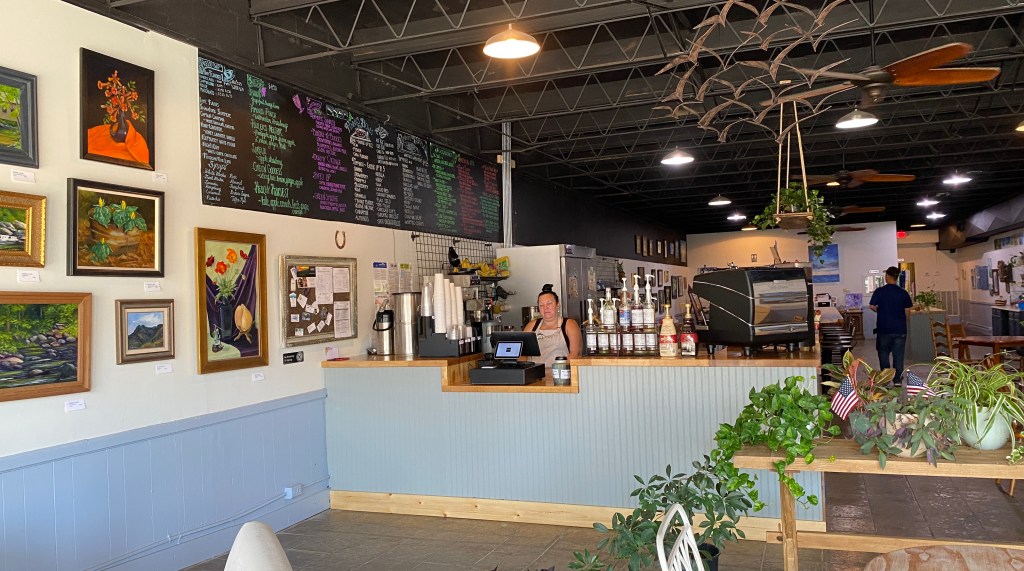 There is a new place to find coffee, smoothies, breakfast, and lunch in downtown Sevierville. Penny’s Cafe offers all those things and more. In addition, local artists display their work in this spacious area. I went by this summer and noticed that the cafe is already quite popular. Here are some quick observations.