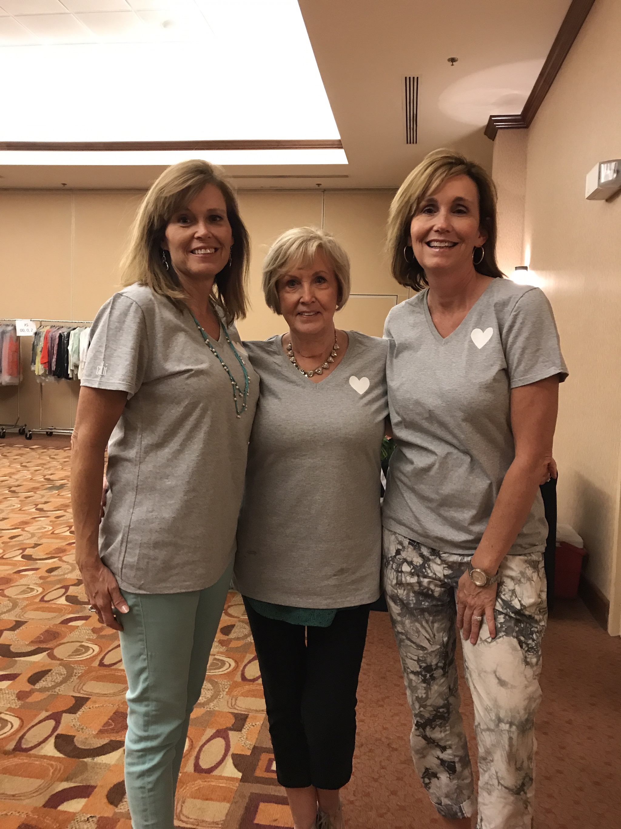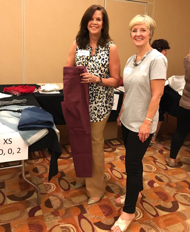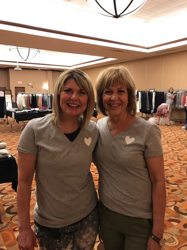 The volunteers wore Heart of Cabi T-shirts sent by the company to help identify the helpers and stylists. Stylists pictured here from left to right are Lisa Bitzas, from Seymour, and Diane Beshears, from Knoxville. Does Lisa’s name sound familiar? She is a music teacher in Seymour who is married to George Bitzas, the incredible tenor who has sung the National Anthem for the Vols football games. A Vol fan, I was thrilled to learn this fact!