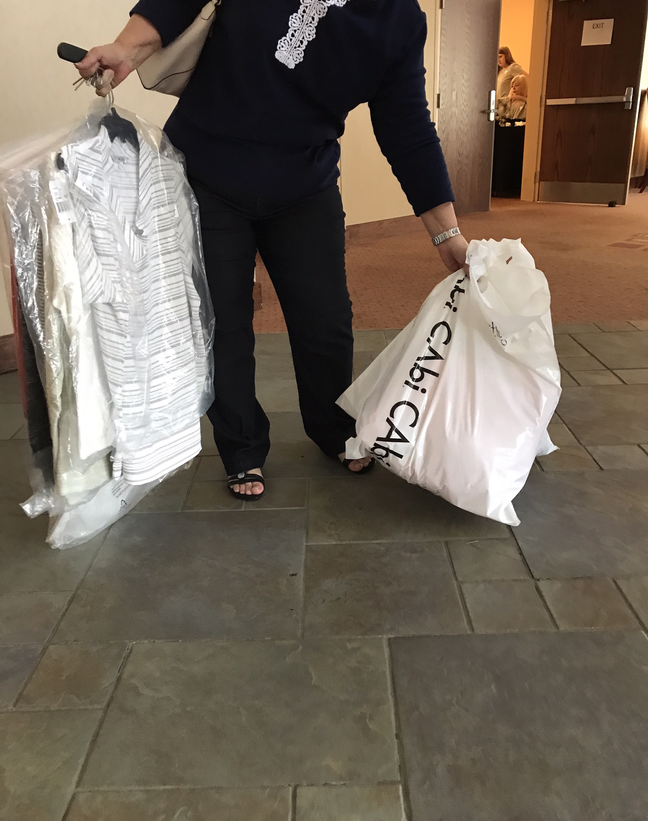 On a humorous note, one husband looked at his wife’s bags, looked at us, and asked, “so who do I thank for losing my side of the closet?’ We laughed.