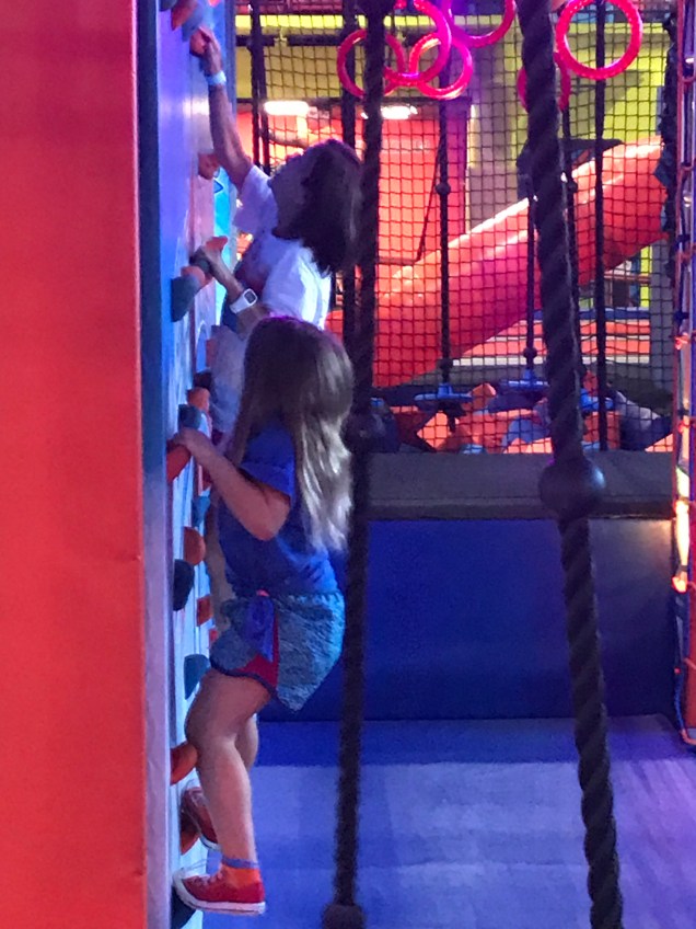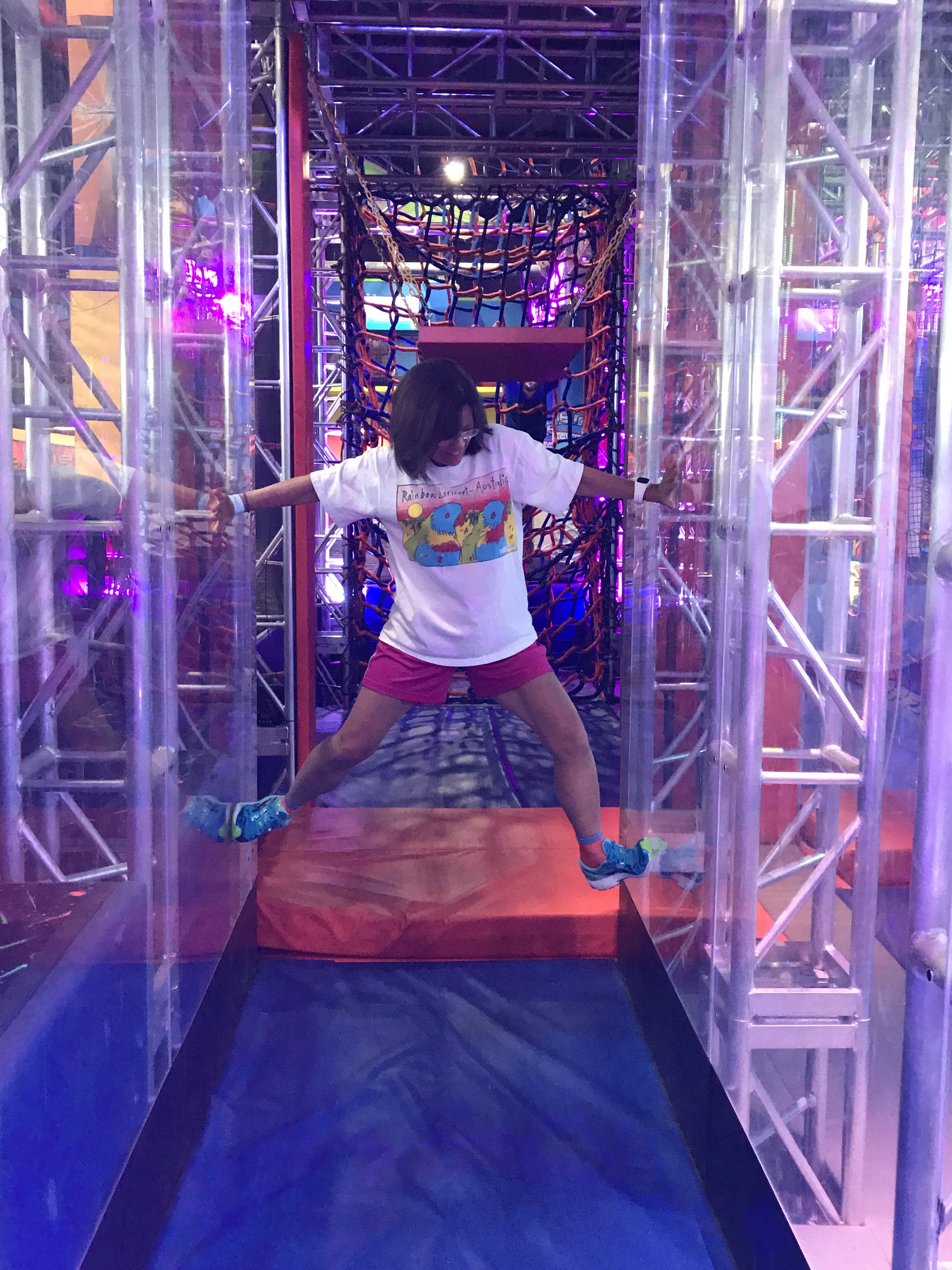 Nice drop off! Hang on to the ropes. You have plenty of room, but the ropes increase the safety and feeling of security.