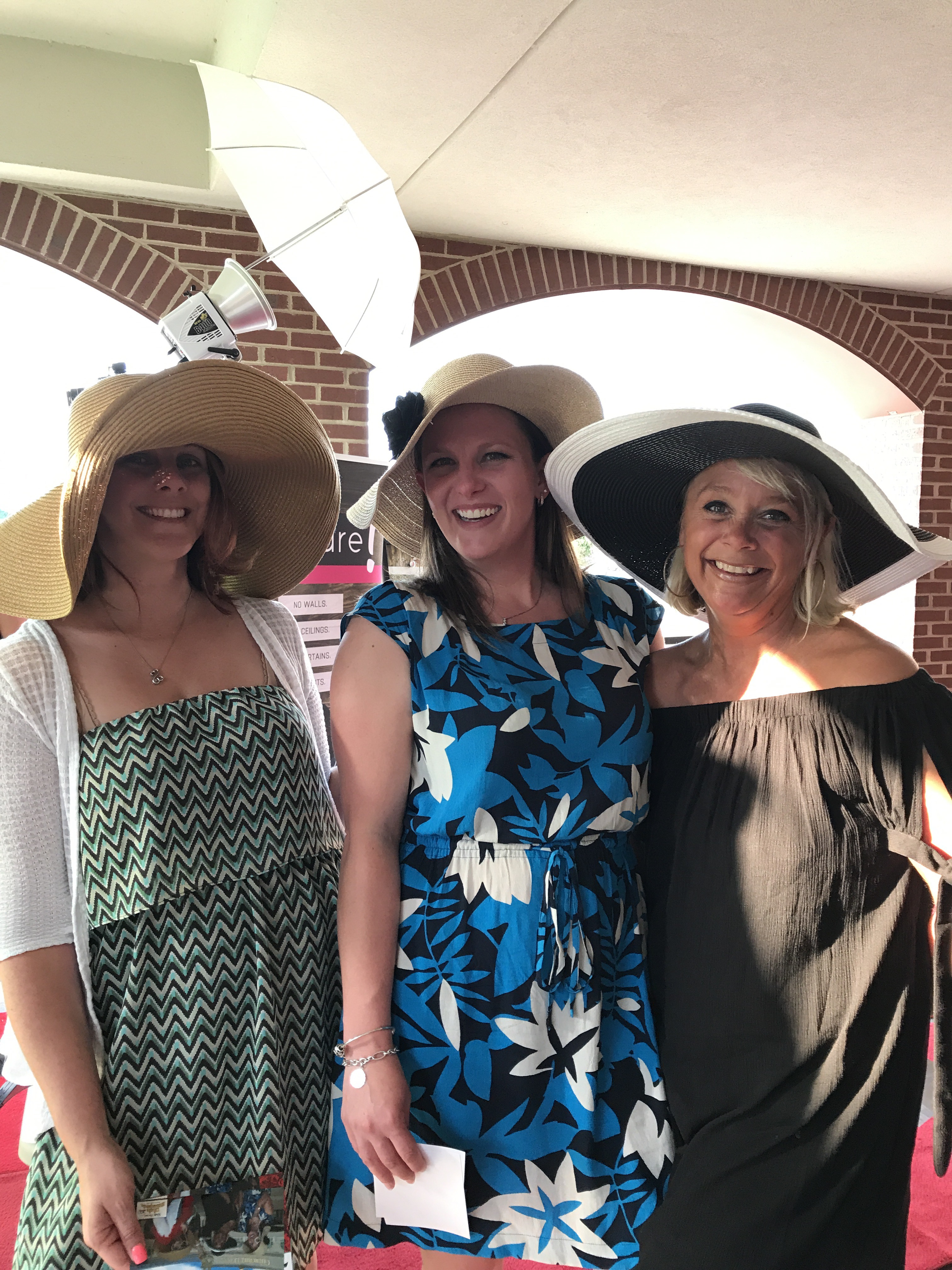 Emily Whaley, Donna Rolen, and Amy Harper don their most festive hats at the Ladies Hat Social event.