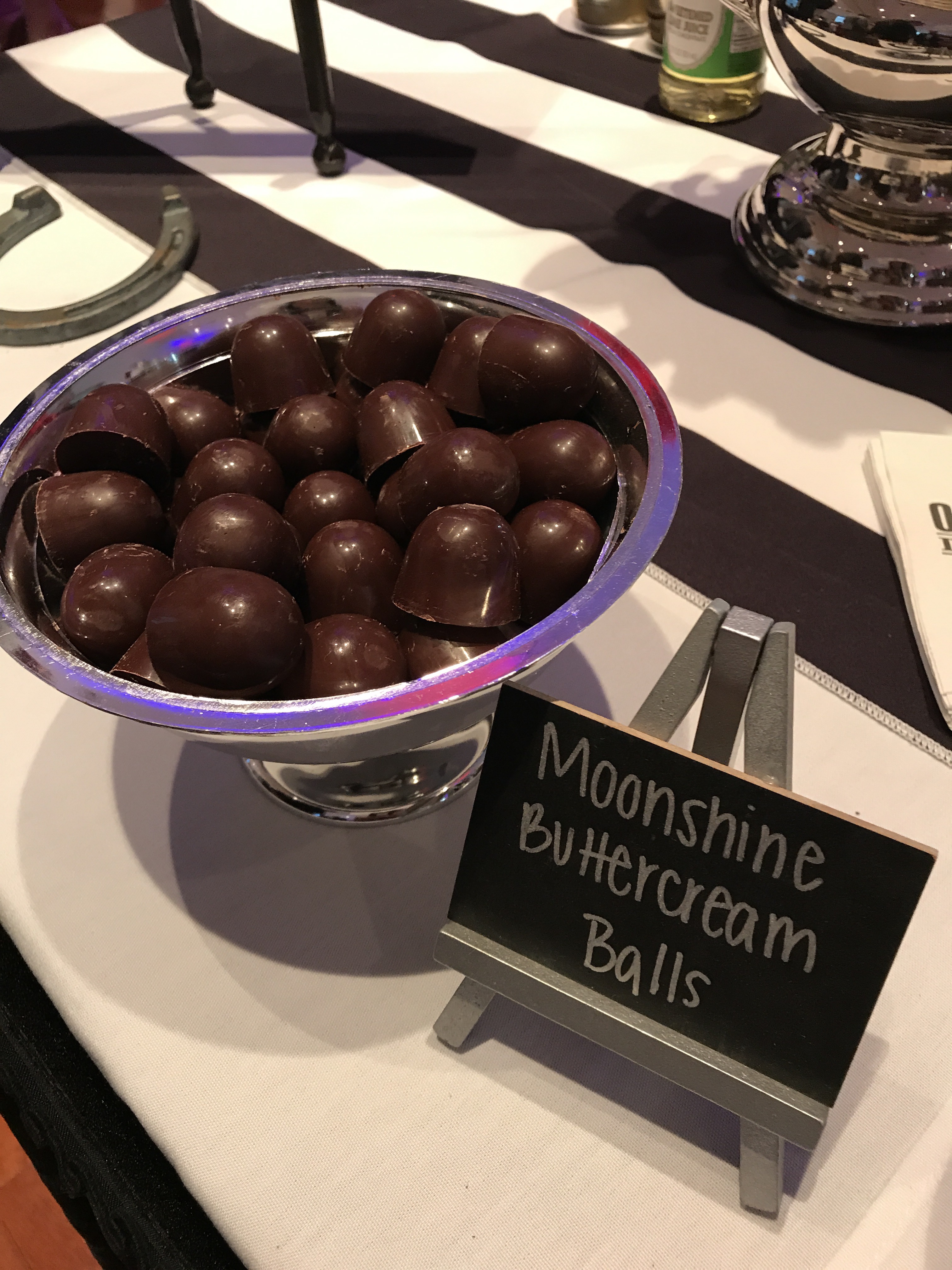 Festive decorations revealed one of my favorite things to found at these events— delightful little chocolate covered moonshine candies. Only Sophia and Janice could tell you how excited I became to see these treats. They are delightful!
