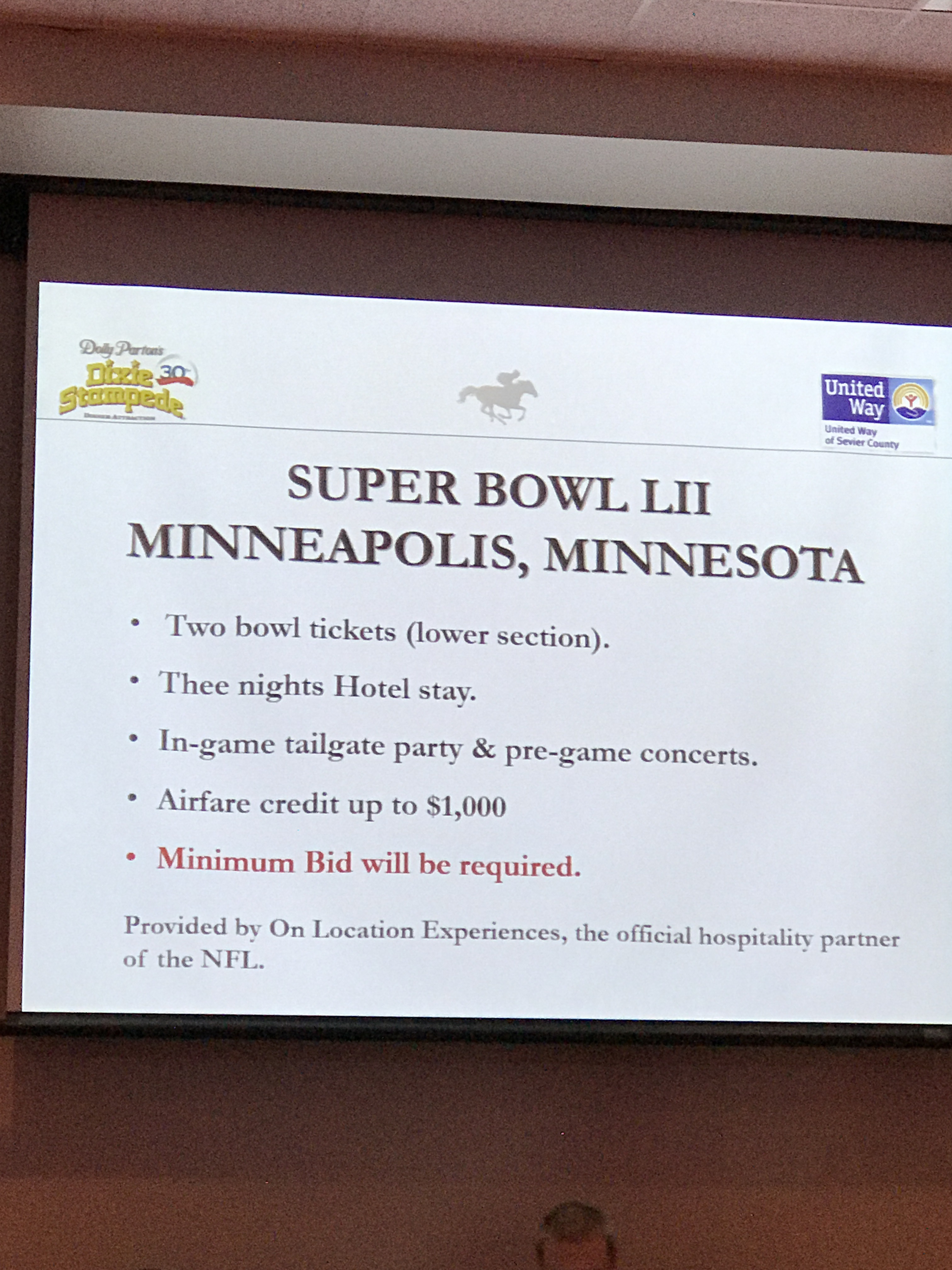 At 6:00, we were called to order and thanked for supporting the United Way of Sevier County. Next, it was explained how to split into two groups for the next dinner courses.